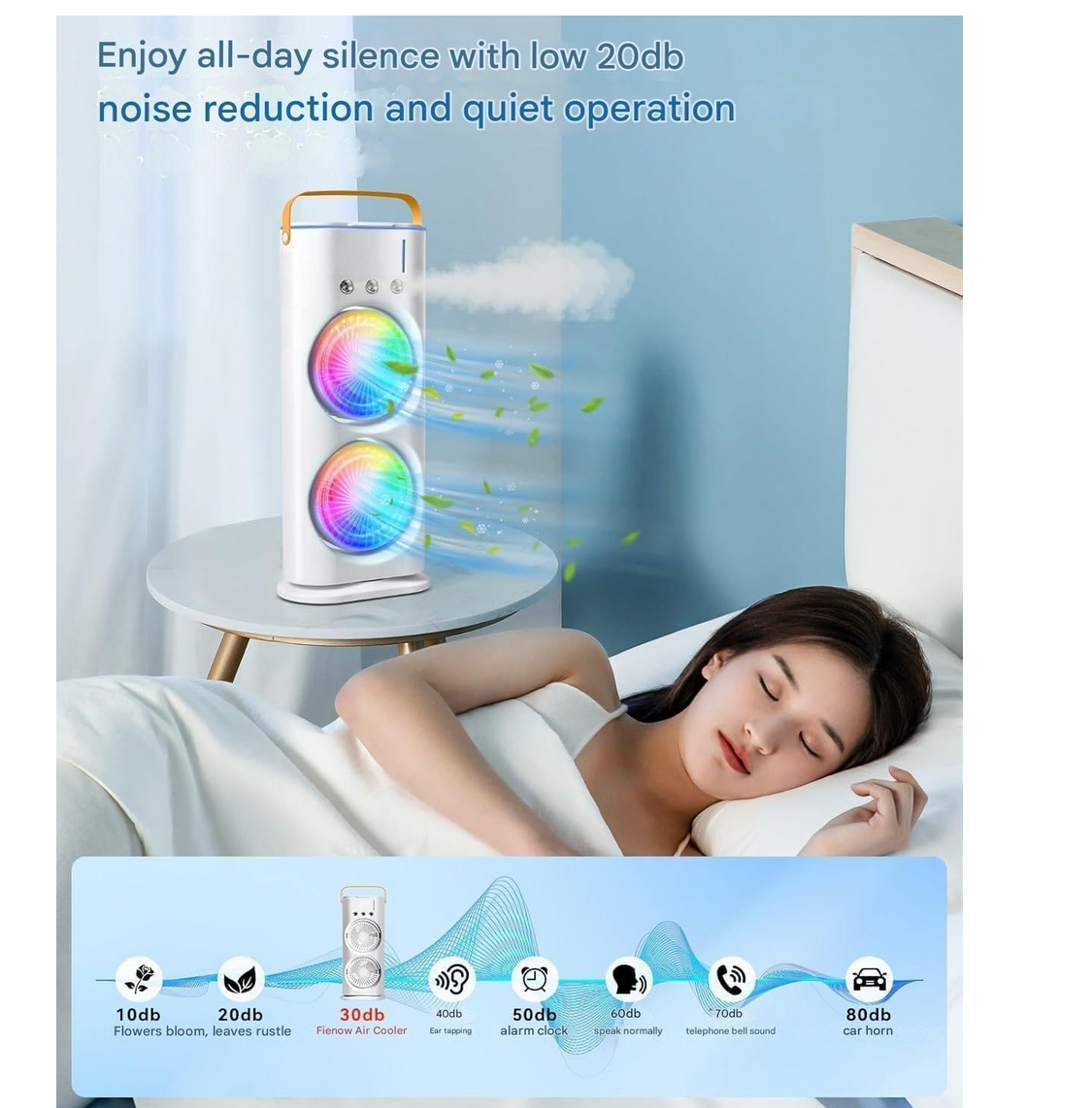 Be the first to review “Portable Mini Air Cooler Fan for Room with 7-Color LED Light,(White Double Fan)”