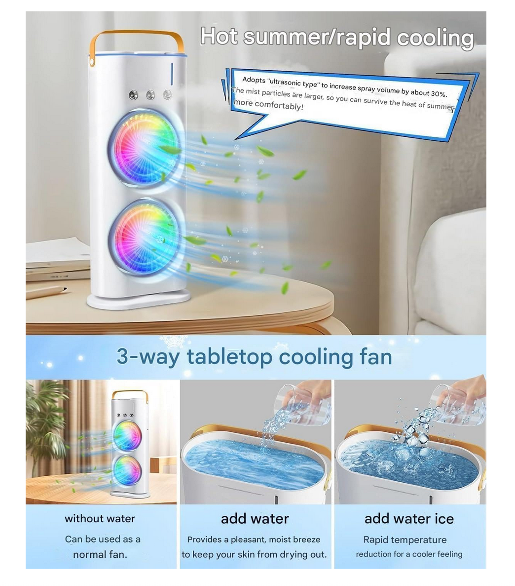 Portable Mini Air Cooler Fan for Room with 7-Color LED Light,(White Double Fan)